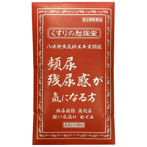 | 成分・分量 2包(5.0g)中 | 八味地黄丸エキス(2/3量) ジオウ 3.33g、サンシュユ 2.00g、サンヤク 2.00g、タクシャ 2.00g、ブクリョウ 2.00g、ボタンピ 2.00g、ケイヒ 0.67g、ブシ末 0.67gより抽出。 添加物として乳糖、セルロース、メタケイ酸アルミン酸Mg、ステアリン酸Mgを含有する。 | |||||||||||