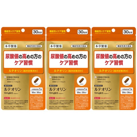 尿酸値の高めの方のケア習慣 30粒 3個セット ルテオリン 機能性表示食品 メール便送料無料