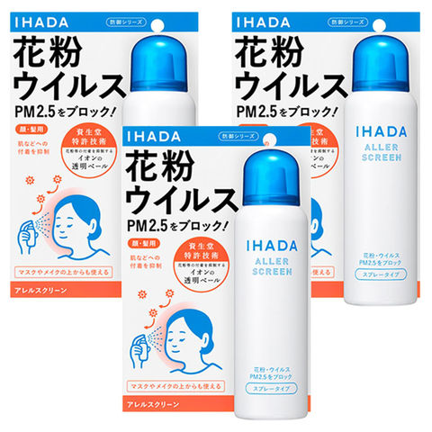 ●メイクの上からも使えるスプレータイプ。顔・髪用、花粉、ウイルス、PM2.5をブロック! 肌などへの付着を抑制。天然温泉水配合。資生堂特許技術、花粉等の付着を抑制するイオンの透明ベール。