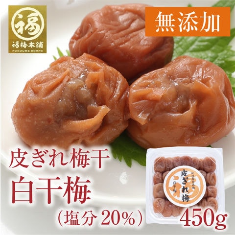 【無添加】紀州南高梅 訳あり 少しだけ 訳あり 皮ぎれ梅干し450g 梅干し 白干梅(塩分20%)