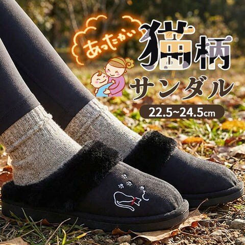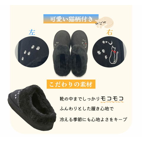 猫柄 スリッパ 外履き 防寒 冬 あったか ボア シューズ 2cm ヒール ソール 軽量 もこもこ 外用 玄関用 ベランダ レディース メンズ グッズ 冷え 対策 ふわふわ 猫 デザイン 刺繍 可愛い 家事 ゴミ出し 庭 来客 ベランダ 暖かい 軽い 防寒アイテム ぽかぽか