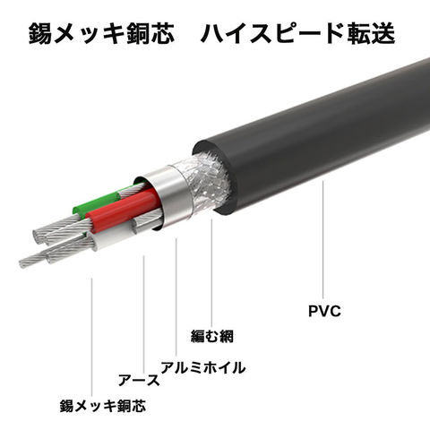 信号伝送ロスを抑える高純度無酸素銅ケーブルを採用し、安定したデータの転送ができます。