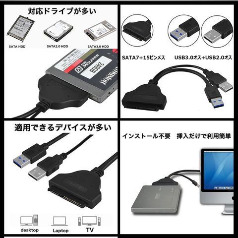 SATA USB3.0 変換アダプター USB3.0 2.5インチ SSD HDD ハードディスクドライブ SATA to USB ケーブル 高速転送 高速 SATA SATA2 SATA3 ケーブル 3.5インチHDD非対応 送料無料