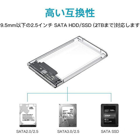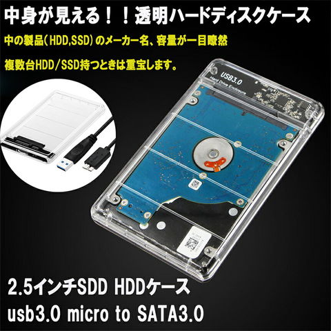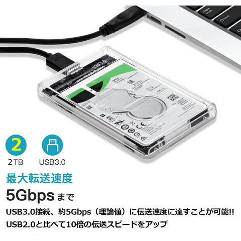 HDD SSDケース USB3.0 2.5インチ USB3.0接続 SATA III 外付けハードディスク 5Gbps 高速データ転送 UASP対応 透明シリーズ ポータブル SSD ドライブ ケース SATA USB 変換ボックス ネジ 工具不要 簡単着脱 Mac Windows