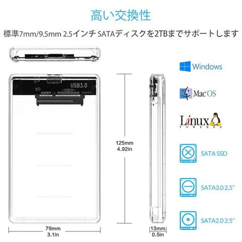 【高い互換性】HDD / SSD、Mac Windows Linux搭載のコンピューター・ノートパソコン対応の 2.5インチ HDD ケースです(2TBまで)。機械HDD、TLC NAND メモリまたはMLC NAND メモリのSSDに最適です。※USBをパソコンに接続後LEDインジケータが光ります、USB未接続の場合、LEDインジケータが光らないです。【透明設計】透明なケース、内部構造をよく見えるデザイン、HDD・SSDの型番、サイズ等一目でわかります。