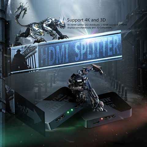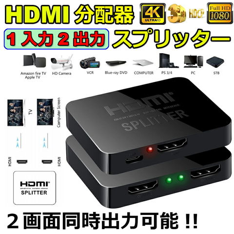 一台のHDMI出力端子付きプレーヤー(ブルーレイ、DVD、PC、PS3、PS4など)の映像と音声信号を、2台のHDMI搭載液晶テレビやモニタに出力可能な分配器です。4K(4096×2160)解像度対応 、1080 P (1920x1200) HDTVと3D映画を支持します。