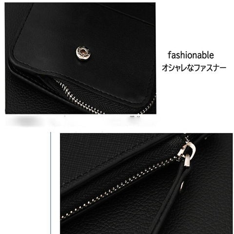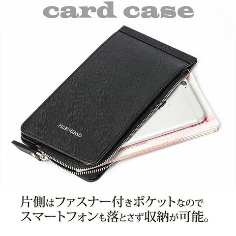 お札、コイン、カード、などまとめて収納が可能。ファスナー付きポケットには、スマホも入ります。