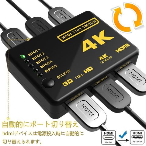 【2個セット】HDMI 切替器 分配器 5入力1出力 4K セレクター 1080p 3DフルHD対応 自動手 動切り替え リモコン switch Blu-Ray DVD DVR Xbox PS3 PS4 Appleなど対応