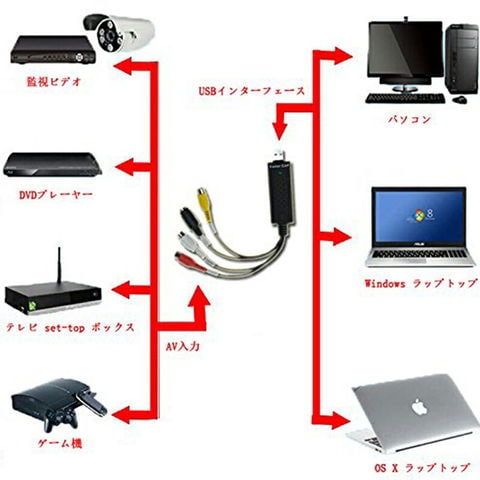 USB2.0接続 キャプチャーボード ビデオキャプチャー S端子 コンポジット端子 キャプチャーケーブル ビデオ DVD VHS ゲーム機 カメラ パソコン取り込み デジタル化
