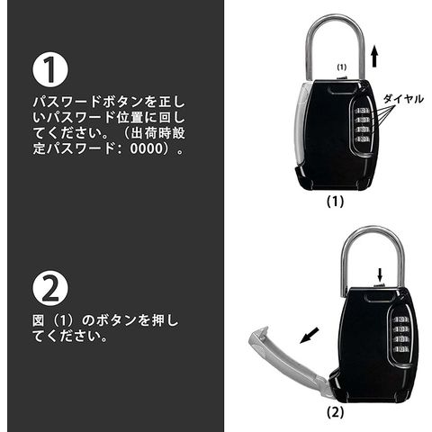 一番:ダイヤルを【0000】に設定し、上のボタンを押し、ボックスを開ける