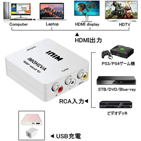 AV to HDMI 変換 コンバーター AV to HDMI 変換 端子 RCA to HDMI USBケーブル付き 1080p 720P 変換 コネクタ 対応 デジタル アナログ オーディオ AV2HDMI 音声転送 白 送料無料