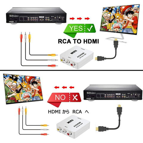 ミニサイズのAV2HDMIコンバーターは、アナログコンポジット(RCA3/CVBS) からHDMI に変換します。逆方向には使えません。