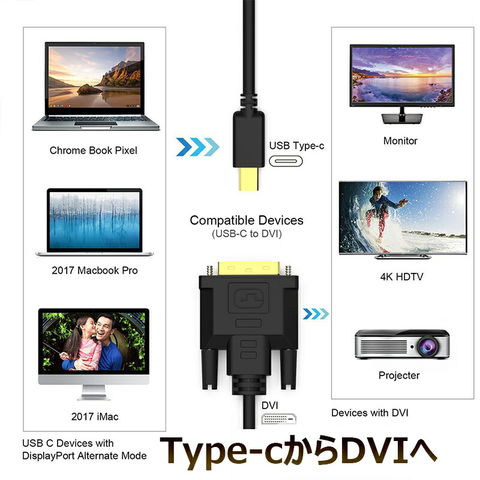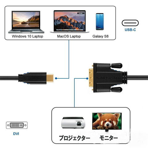 PC ノートパソコン の 映像,動画,写真など をTV テレビ,モニター,プロジェクター などのディスプレイ に出力するためのUSB Type-C(Thunderbolt3)- DVI変換ケーブルです。スマホ対応はGalaxyだけです。※Sony Xperia,AQUOSシリーズ、arrows、Nintendo switch、GoPro·などには非対応です。