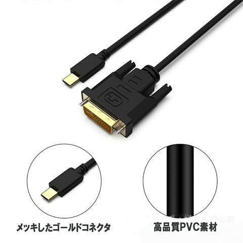【2個セット】USB Type-C DVI-D 変換 ケーブル 1.8m Thunderbolt3 DVI ブラック オス 最新Mac対応モデル 1080p (1920×1080/60Hz) サンダーボルト アダプタ コネクタ Apple MacBook Mac Book Pro iMac