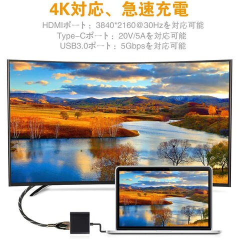 【3-in-1アダプタ】4K対応HDMI出力ポート/ USB3.0高速ポート/ 60W出力PD充電対応USB-Cポート接続が1つのアダプタで可能になりました。
