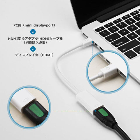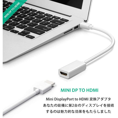 Mini DisplayPort (MiniDP)信号をHDMI信号に変換するアダプタです。HDMIポートが付くHDTV、モニタ、プロジェク タ、LCD ディスプレイ等に接続して大画面のショーやムービー、PPTを楽しめます。(HDMIケーブル(別売り)が必要です。