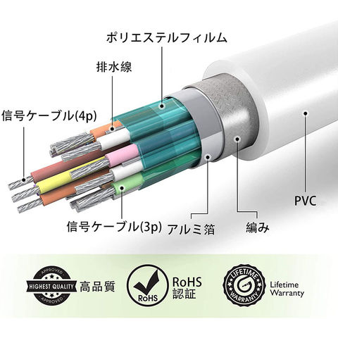 耐久性:耐腐食性と耐久性がある金メッキコネクタを採用して、経年変化による信号劣化の心配が少ないです。