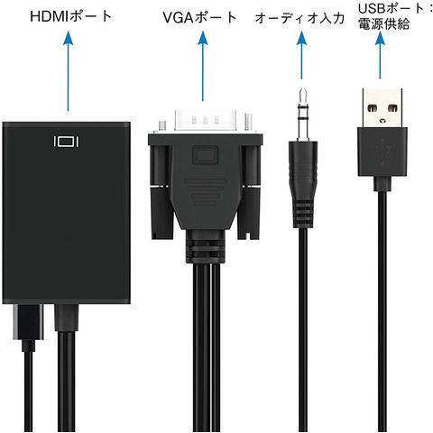 VGA to HDMI 変換 ケーブル ビデオケーブル 変換アダプタ コンバー 1080P USB電源付き 3.5mm音声出力 高解像度 音声転送 テレビ Laptop パソコン モニタなど用