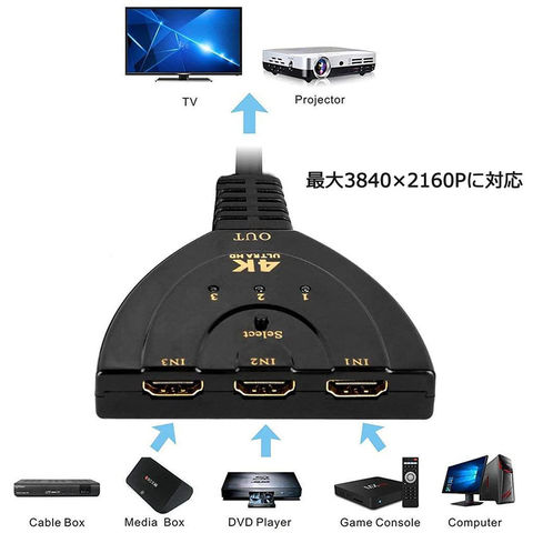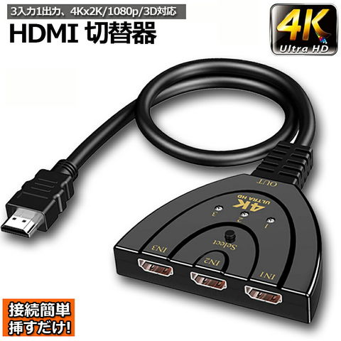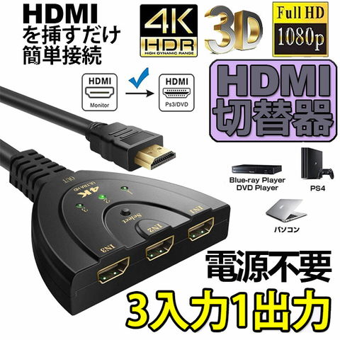 HDMI切替器 3入力1出力 4K 分配器 セレクター パソコン PS3 Xbox 3D 1080p 3D対応 電源不要 Chromecast Stick Xbox One ゲーム機 レコーダー テレビ 送料無料