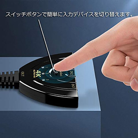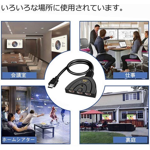 【一台HDMI切替器で三つ機器接続でき】3台のレコーダーやブルーレイプレーヤーやゲーム機などを1台のテレビでスィッチのワンボダンだけで自由に切り替え出来、いちいちケーブルの差し替えをせずに安定性が高められ、テレビなどのHDMIポート不足の解消がお勧めです。【4K超解像度でまるで映画館!!】高い解像度のビデオを処理するたびに、2160Pに達することができます。スーパー3D映画、超クリアのビデオを対応します。2160p (UHD, 4K), 1080i/p (Full HD), 780i/p (HD), 576i/p (PAL), 480i/pと互換できて,非常に便利です。最高250MHzで、伝送も早くて、音声と画質などが綺麗で歪めません。
