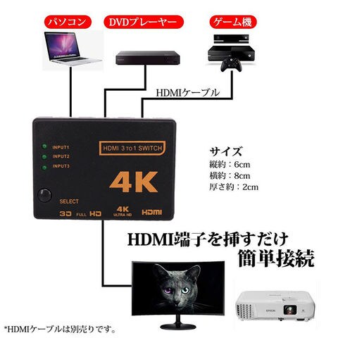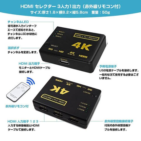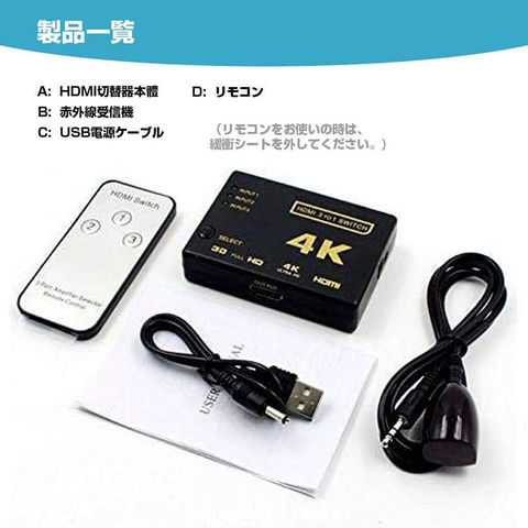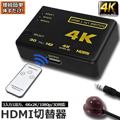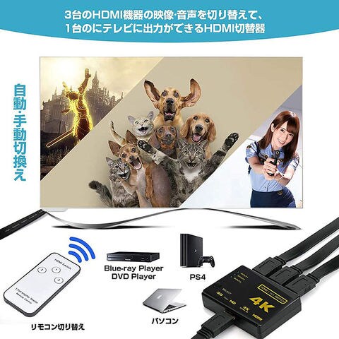 HDMI 切替器 分配器 3入力1出力 4K セレクター 1080p 3DフルHD対応 自動手 動切り替えリ リモコン HDTV Blu-Ray DVD DVR Xbox PS3 PS4 AppleTV 送料無料