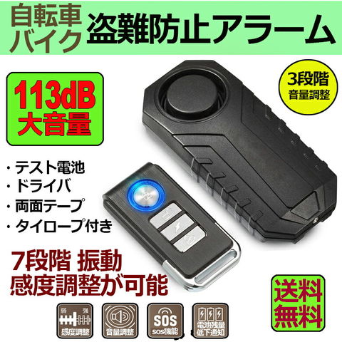 【2個セット】自転車 バイク 防犯ブザー 盗難盗難防止 グッズ 防犯ブザー 車 セキュリティアラーム 3段階音量調整 7段階振動感度 振動アラーム 113dB 大音量 自転車 自動車 自宅 ドア 窓 防犯対策 送料無料