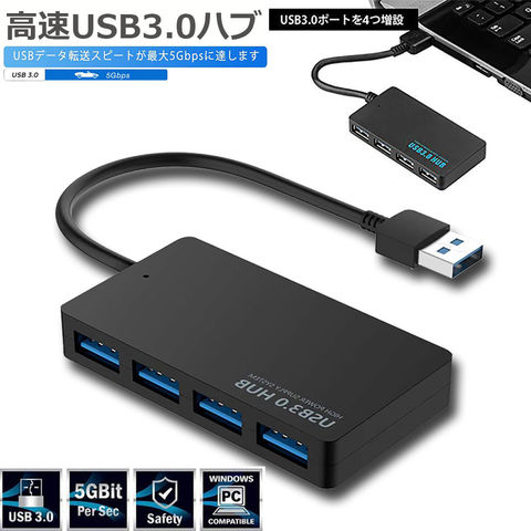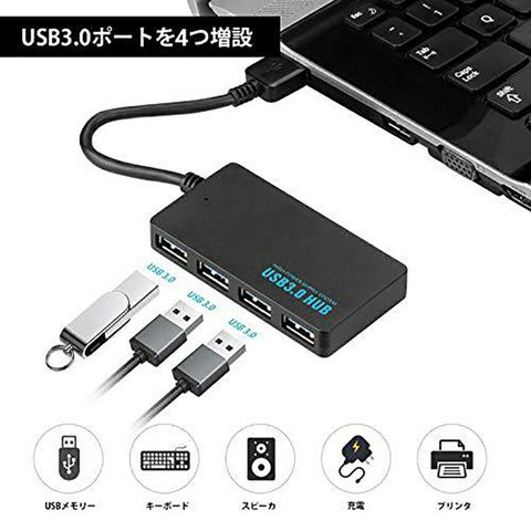 【4ポート搭載】USB3.0ポートが4個あり、USB3.0ポートの少ないPCでも同時に4台のUSB機器と接続でき、端子不足の悩みを解消できます。挿すだけで使用できて、利便性が高いです。【高速データ転送】USB3.0ポートは最大5Gbpsのデータ転送速度に対応し、HD動画も数秒で転送可能です。従来のUSB2.0/1.1デバイスにも対応です。※USBデータ転送速度(理論値):USB3.0最大5Gbps、USB2.0最大480Mbps、USB1.1最大12Mbps。(5V/1Aの給電アダプターを接続すれば、消費電力の大きな機器も安心して使えます。※給電ケーブル付属しておりません!)