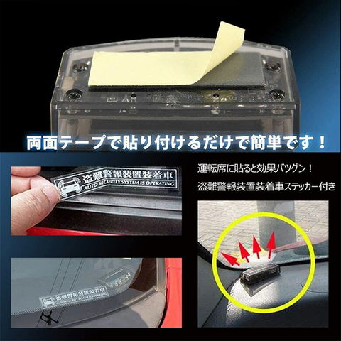 車用 カーセキュリティ ナイトシグナルデコ ダミー 防犯 盗難防止 警告 ソーラー 配線不要 電池不要 太陽光充電 置くだけ 撃退LED センサー 送料無料