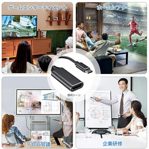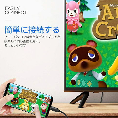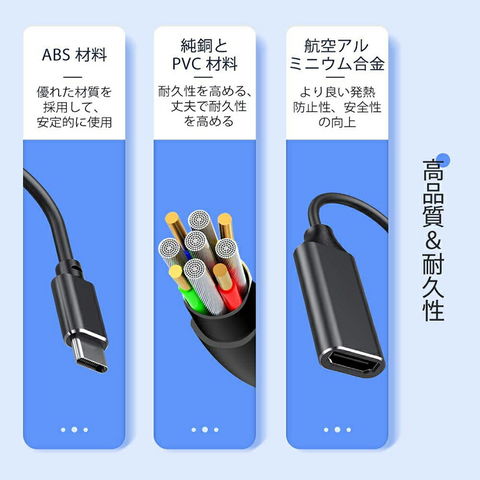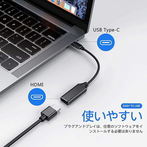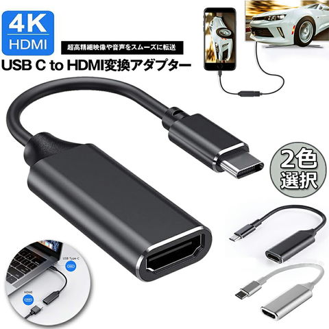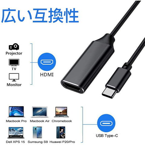 Type C(usb c 3.1)ポートのパソコンやスマホからHDMIポートを搭載したモニター、ディスプレイに接続すると、最大4Kの高画質を体験可能なケーブルです。