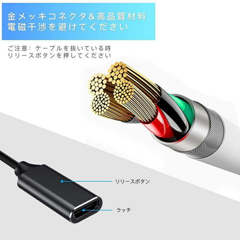USB-C HDMI コネクタには、金メッキを採用して、錆に強く信号劣化を抑えできます。