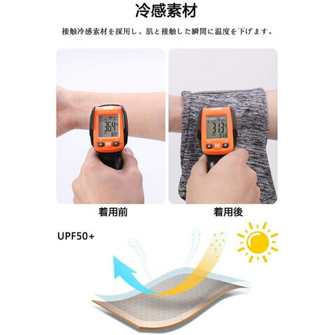4. 冷感素材採用して、 肌と接触した瞬間に温度を5-10度を下がる涼しい冷感、真夏中でもクールを感じます。夏にはUVカット、紫外線を対策します!