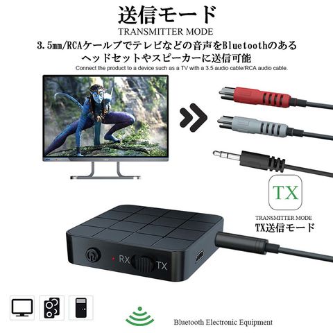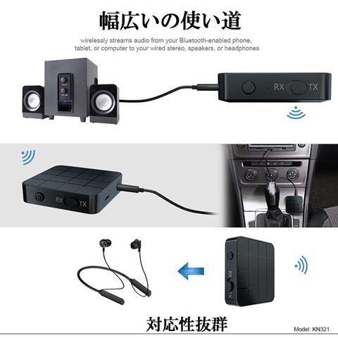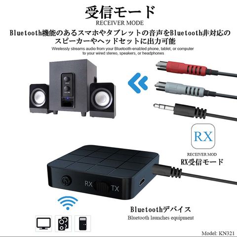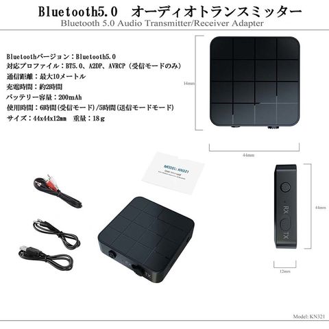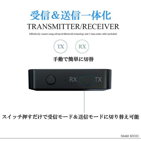 Bluetooth5.0 トランスミッター レシーバー switch対応 1台2役 送信機 受信機 無線 ワイヤレス 3.5mm オーディオスマホ テレビ TXモード輸出 RXモード輸入 音楽 送信機 受信機 ブルートゥース KN321 送料無料