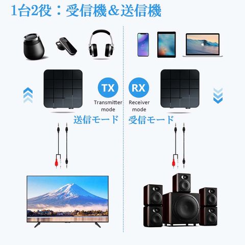 本製品はBluetooth5.0送信&受信機能を兼ね備えています。 高い互換性があります。