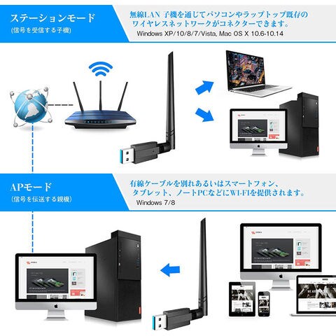 【幅広く互換性&便利】Windows Vista/XP/10/8/7, Linux, Mac OS 10.6-10.13対応と互換性があり、デスクトップやノートパソコンのワイヤレス接続ニーズを満たします。小さいでコンパクトなデザインはユーザーにとって持ち運びに便利です。