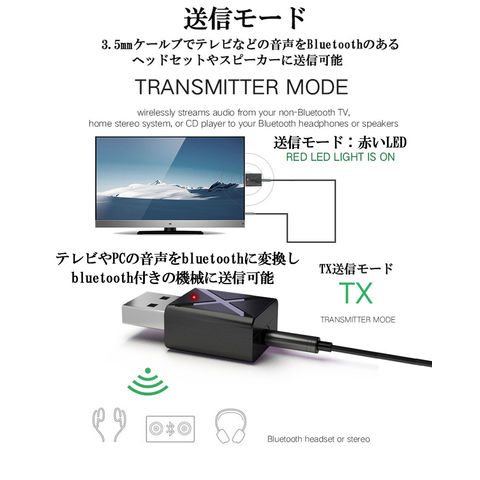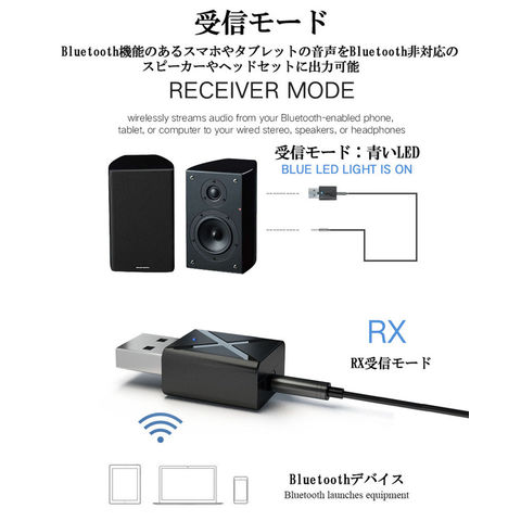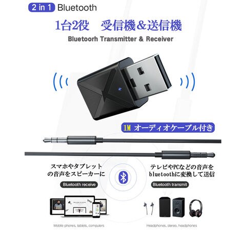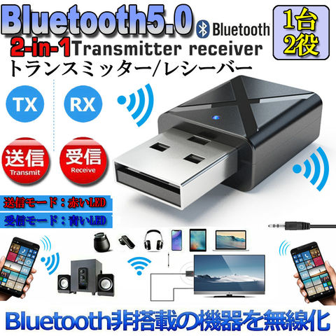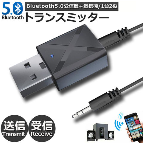 Bluetooth5.0 トランスミッター レシーバー 1台2役 送信機 受信機 無線 ワイヤレス 3.5mm オーディオスマホ テレビ TXモード輸出 RXモード輸入 音楽 送信機 受信機 ブルートゥースios iPhone Android 古いコンポ 車載AUX スピーカー等に適用 送料無料