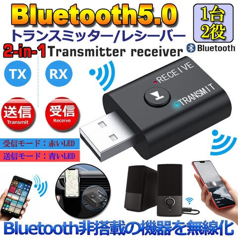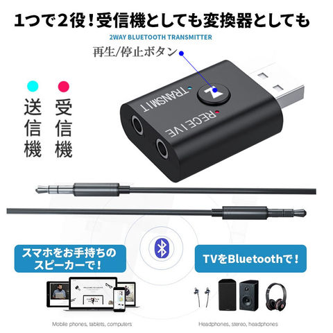 Bluetooth5.0 トランスミッター レシーバー 1台2役 送信機 受信機 無線 ワイヤレス 3.5mm オーディオスマホ テレビ TXモード輸出 RXモード輸入 音楽 送信機 受信機 ブルートゥースios iPhone Android 古いコンポ 車載AUX スピーカー等に適用 送料無料