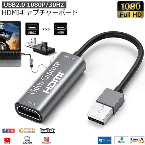 HDMI キャプチャーボード USB2.0 1080P 30Hz HDMI ゲームキャプチャー ビデオキャプチャカード ゲーム実況生配信 画面共有 録画 ライブ会議に適用 小型軽量 DSLR ビデオカメラ ミラーレス PS4 Nintendo Switch、Xbox One 電源不要 送料無料