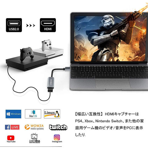 【幅広い互換性】HDMIキャプチャーはPS4、Xbox、Nintendo Switch、また他の家庭用ゲーム機のビデオ/音声をPCに表示したり、録画/ライブ配信(ライブ)したりすることができます。これで実況ゲームビデオをYouTubeや、Facebookや、Twitterなどのビデオ配信サイトに投稿できます。