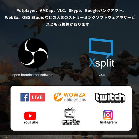【その他の特徴】・Windows、Mac、AndroidのOSに対応。・VLC media player、OBS Studio、XSplitなどのライブ映像録画アプリケーションが使用できます。・電源不要、ドライバインストール不要、持ち運びに便利な小型設計。