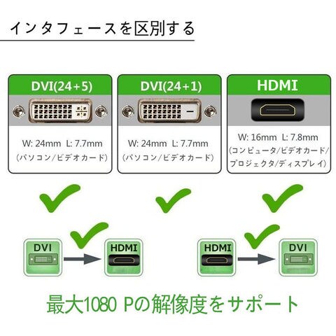 【DVI⇔HDMI双方向対応】DVI またはHDMIポートを搭載したPCからDVI or HDMIポートを搭載するモニターor HDTVs に接続し出力します。お使い設備がDVIポートさえあれば、DVI⇔HDMI双方向対応ができます。DVI-D(24+1)とDVI(24+5)インターフェイスは、1080P HD双方向ビデオ伝送をサポートします。