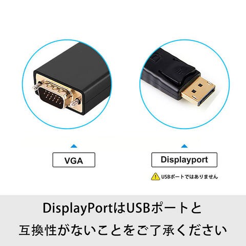 利用可能なDisplayPort出力を備えたデスクトップおよびラップトップ、VGA入力を備えたモニター。