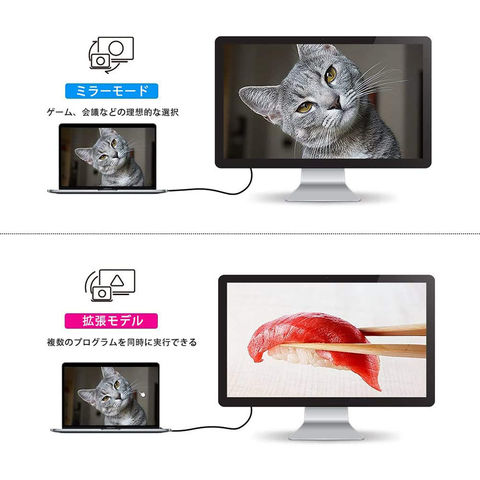 【ミラー&モード対応】モニターを接続・配置し、デスクトップの拡張またはミラー用に使えます。ミラーモードとは、コンピュータのデスクトップ画面と同じコンテンツを表示し大画面のHDTV等で映画やゲームを楽しめる。 拡張モードとは、デスクトップとモニターに異なる内容を表示し、作業しながらプレイもできます。