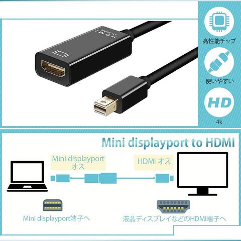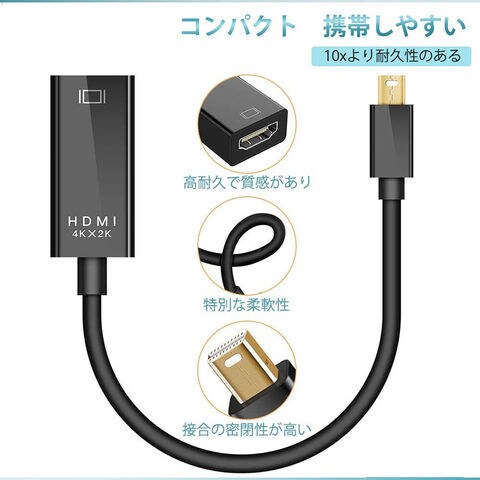 Mini DisplayPort to HDMI 変換 アダプター 4k@30Hz 金メッキ Thunderbolt to HDMI HDTV 変換 ケーブル TV ディスプレイ モニター用 HP DELL Microsoft Surface Proなどに対応 ブラック 送料無料