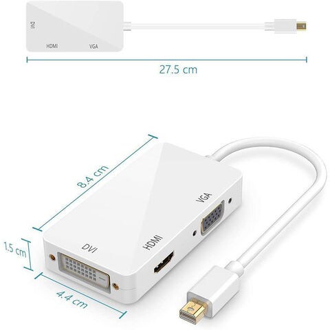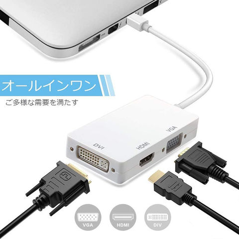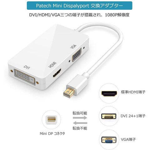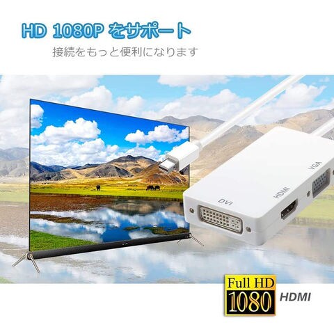 Mini Displayport to HDMI DVI VGA 3in1変換アダプター Thunderbolt to HDMI Surface pro 対応 MiNi DP ビデオアダプタ Mac Book Air/Mac Book Pro/iMac/Mac mini対応 ホワイト