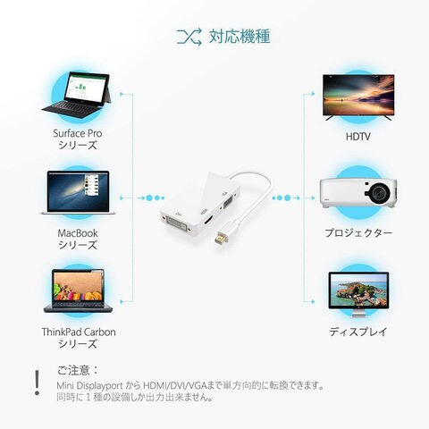 【対応機種】MiniDP ポートやthunderboltポートを持つMac Book Air、Mac mini、Mac Book Pro、 iMac、Microsoft Surface pro 1 2 3/Thinkpad Carbon X1 series をサーポートします。多画面のベスト選択で、多くの幅広いスクリーンにスライドと映画を見ることができます。