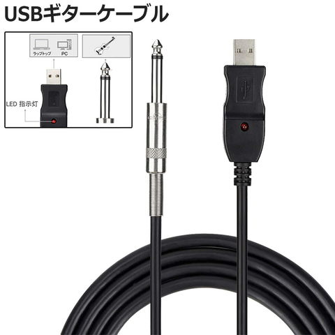 USB ギターケーブル USBリンクケーブル楽器 PC 録音 3M ベースケーブル USB 録音ケーブル アダプタ コンバータ 接続機器 3M 6.5 MM ジャックコンピュータ 録音ケーブル PC Mac録音 送料無料
