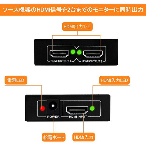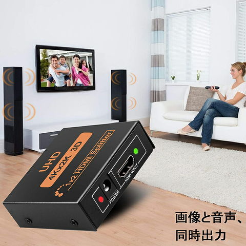 【HDMI 分配器 2出力】ゲーム機やBDレコーダー等からの1つのHDMI信号(映像&音声)を、2台のディスプレイ機器(テレビやプロジェクター等)に同時出力できるHDMI分配機(HDMIスプリッタ)です。【4K*2Kまでの解像度に対応】4K(3840*2160@30Hz /10.2Gbps)、3D映像やHDCP1.4に対応しており、美しく高精細な4K映像を劣化なく出力できます。展示会や会議など、多くのモニターに同時出力させる場合に適します。(※PS4proに非対応)