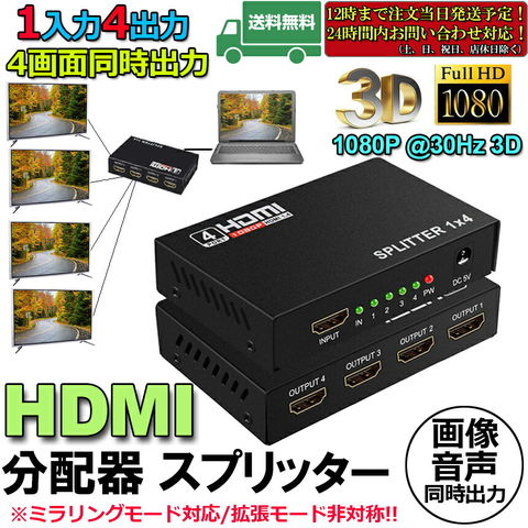 HDMI 分配器 スプリッター 1入力 4出力 4画面 同時出力 高解像度1080P @30Hz 3D PC Xbox PS4 任天堂スイッチ Fire TV Stick プロジェクター 対応 送料無料