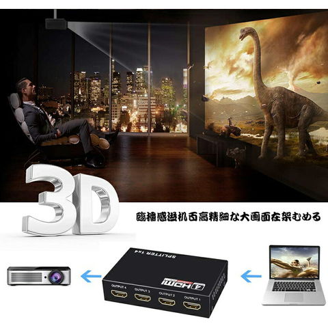 本HDMIスプリッターは4台のhdmi出力機器に同時に出力できます。