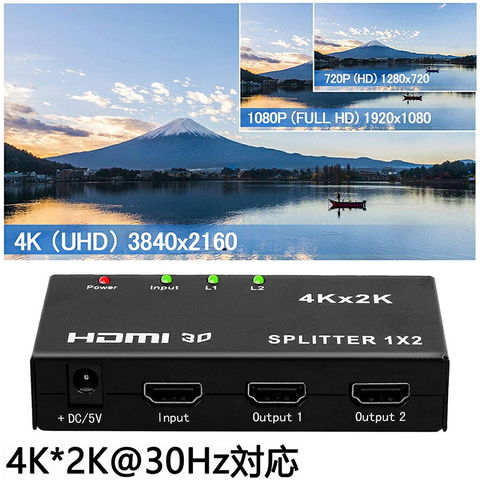 HDMI 分配器 スプリッター 1入力 2出力 同時出力 4K*2K 30Hz 3D 映像対応 TV PC Xbox PS4 任天堂スイッチ Fire TV Stick プロジェクター 対応 送料無料